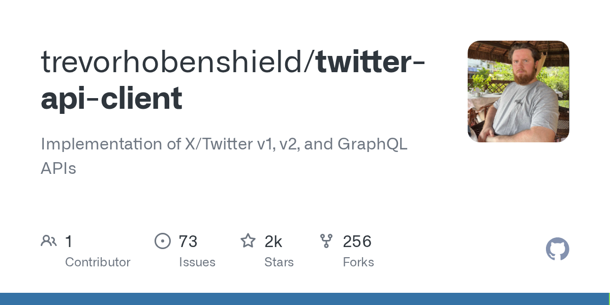 As for the API calls themselves, https://github.com/fa0311/TwitterInternalAPIDocument and https://github.com/fa0311/twitter-openapi seem to be the closest there is to documentation. I think this should be fine for my purposes.